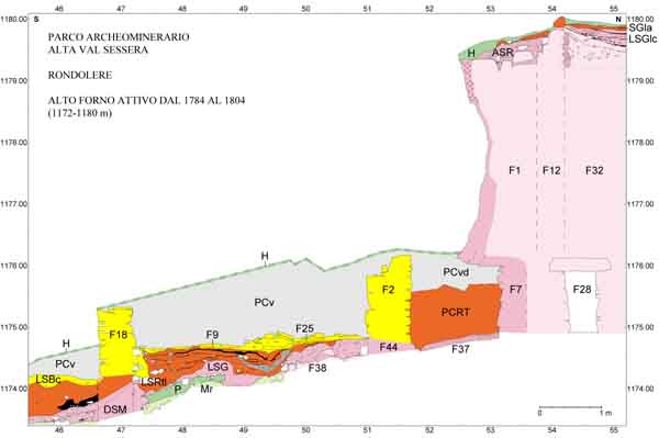 Rondolere, sezione stratigrafica dellalto forno,